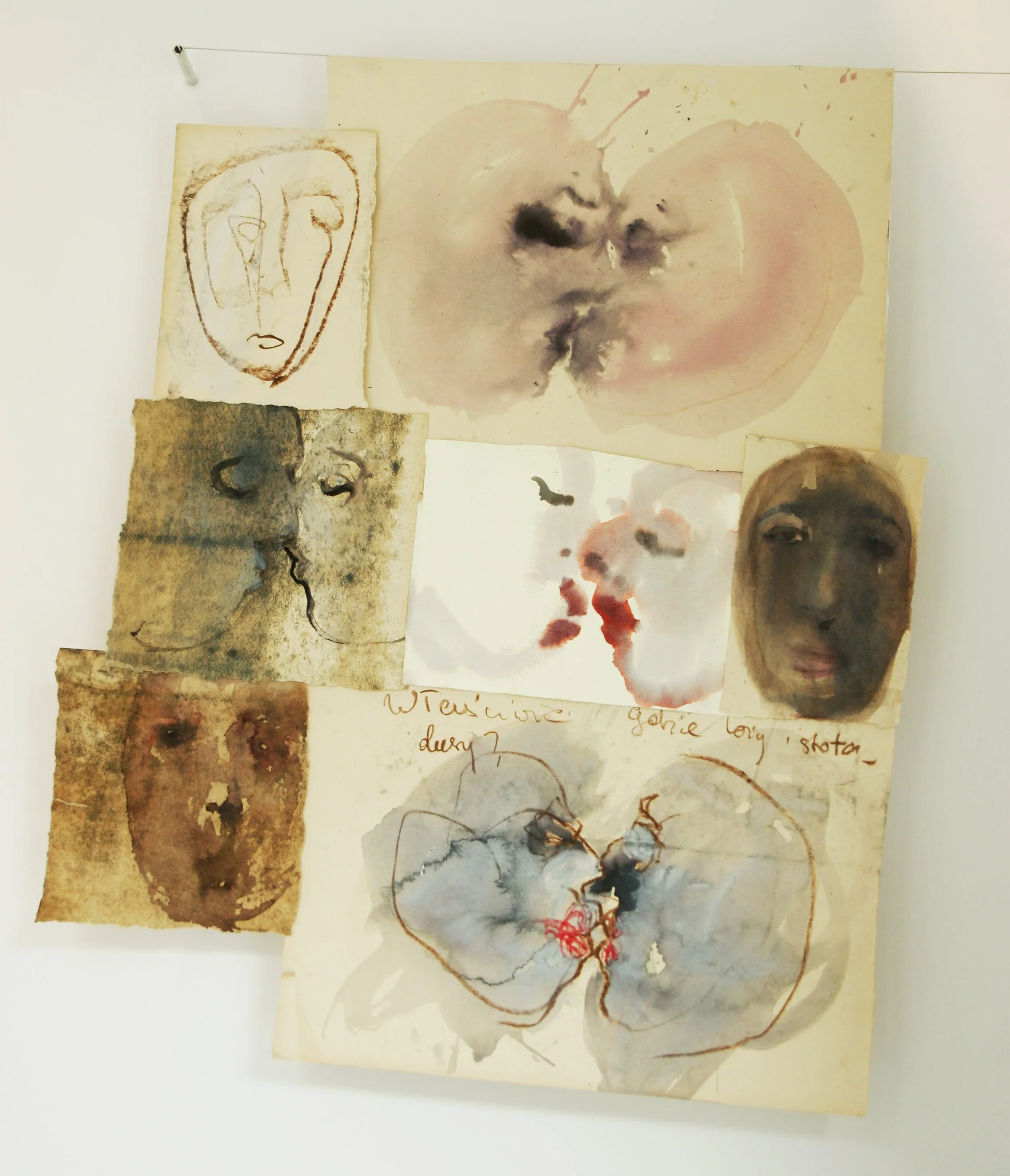 Heads No 10, oil, ink, stitching, gouache on canvas, 300x200cm, 2016-2019