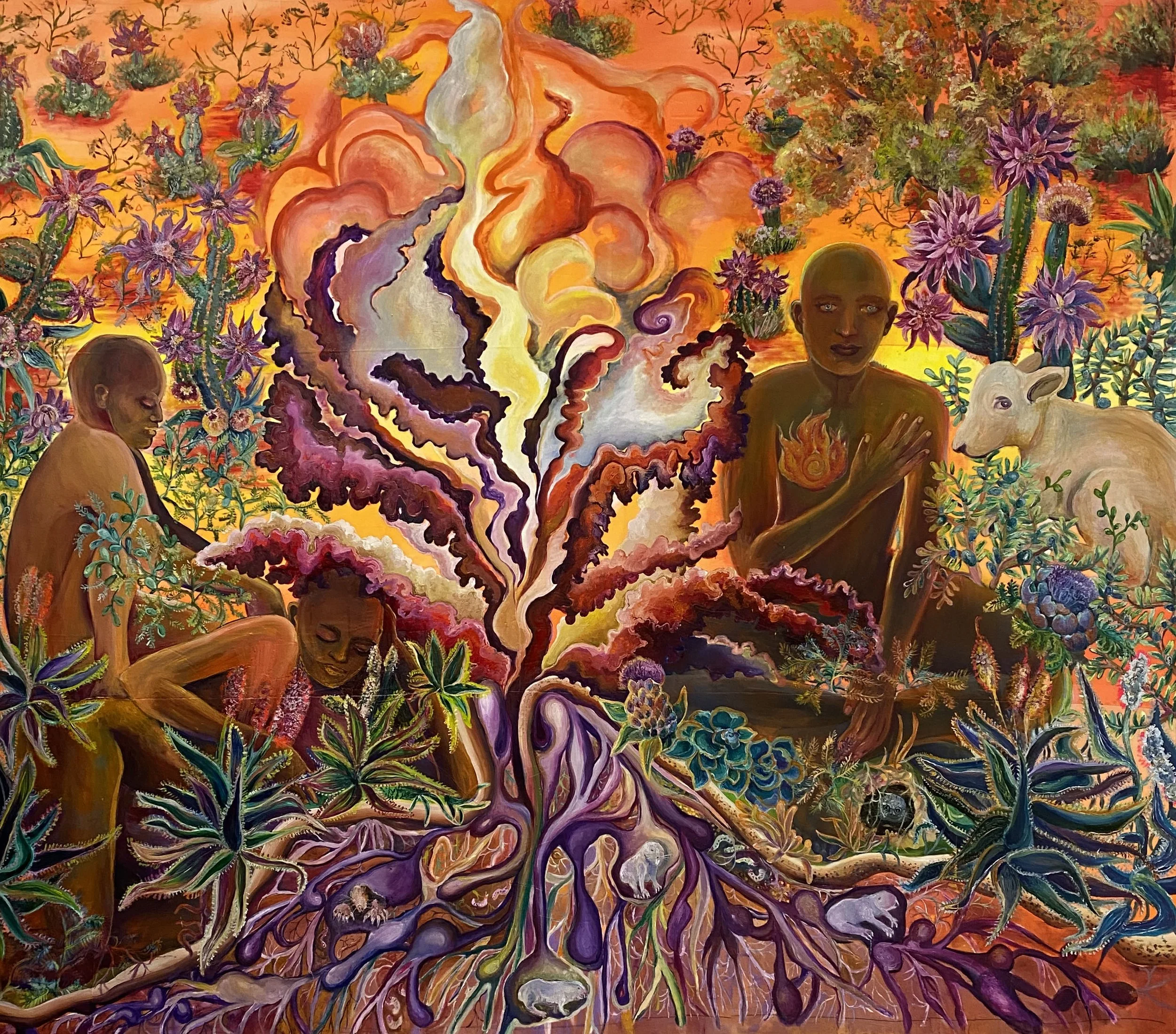 Fire symbolizes transformation: burning away what no longer serves, igniting passion, spiritual awakening, and renewal. Earth represents grounding, memory, and the cycles of birth and return. Together, they reflect the ecological urgency of our times, acknowledging that humans are inseparable from the natural forces around us. This series responds to the reality of wildfires, environmental instability, and the fragile balance of life.